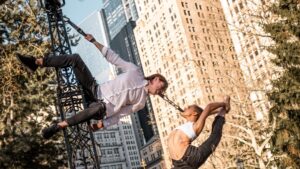 Sergey et Maria Romanenko sont deux acrobates originaires de Marioupol en Ukraine. Ils ont fondé le Duo Breathe Love il y a environ huit ans à la sortie de leur école de cirque.