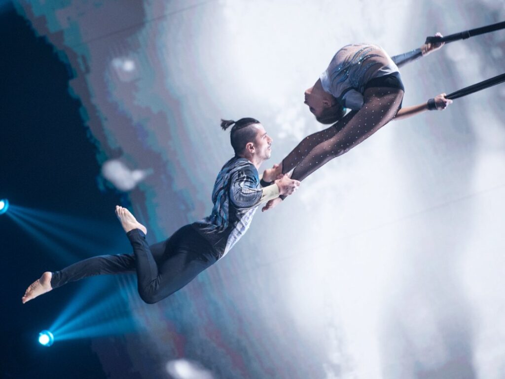 Sergey et Maria Romanenko sont deux acrobates originaires de Marioupol en Ukraine. Ils ont fondé le Duo Breathe Love il y a environ huit ans à la sortie de leur école de cirque.